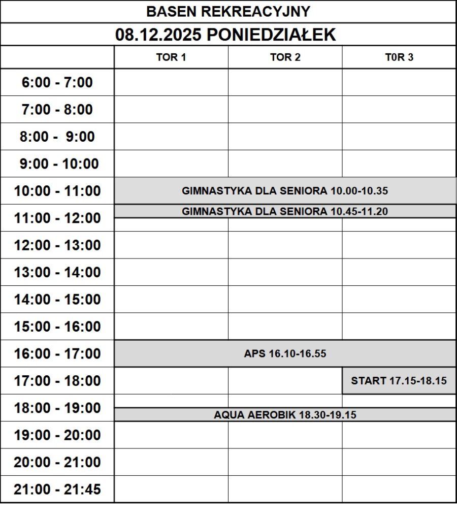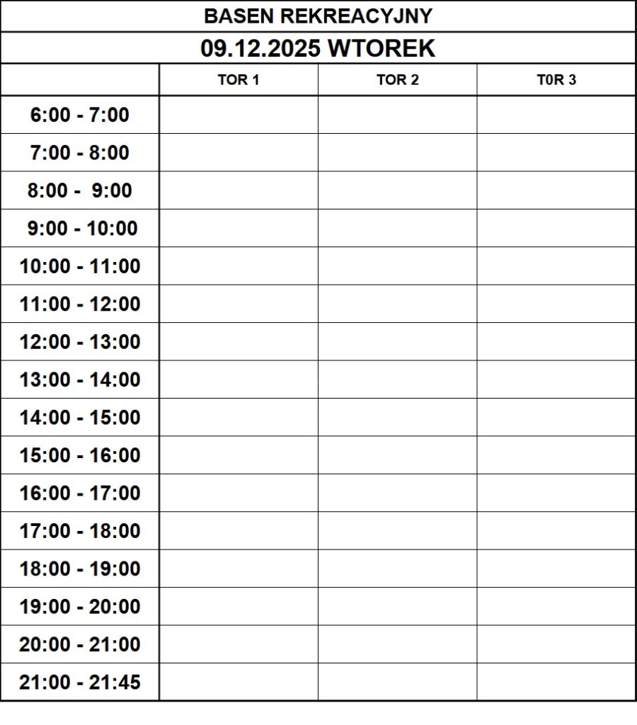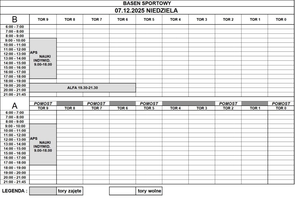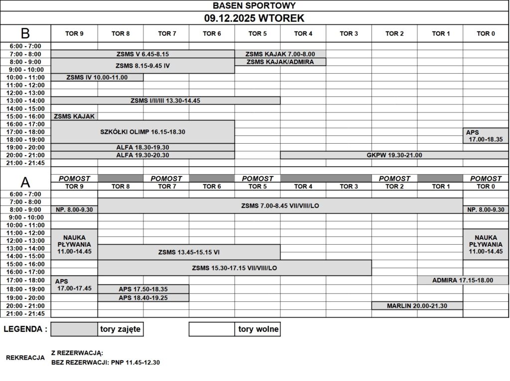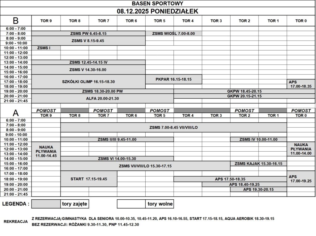 Grafik rezerwacji torów na basenie sportowym: